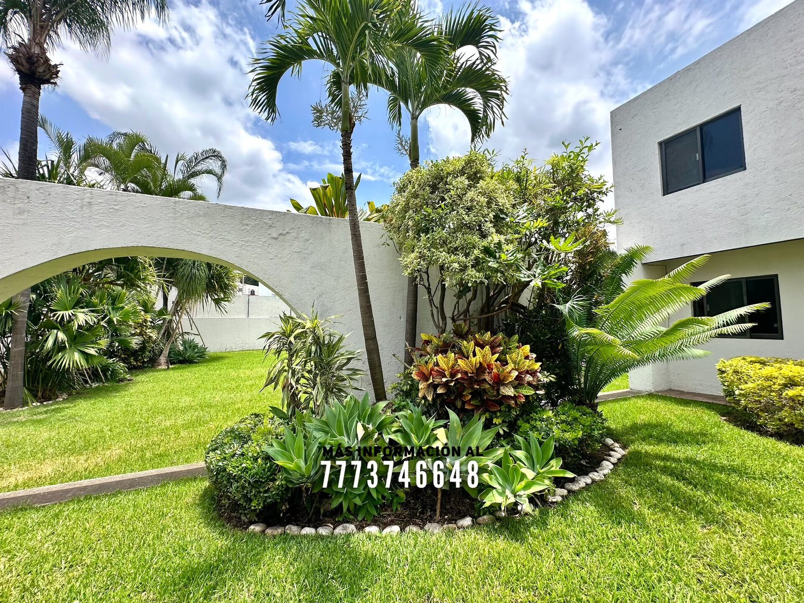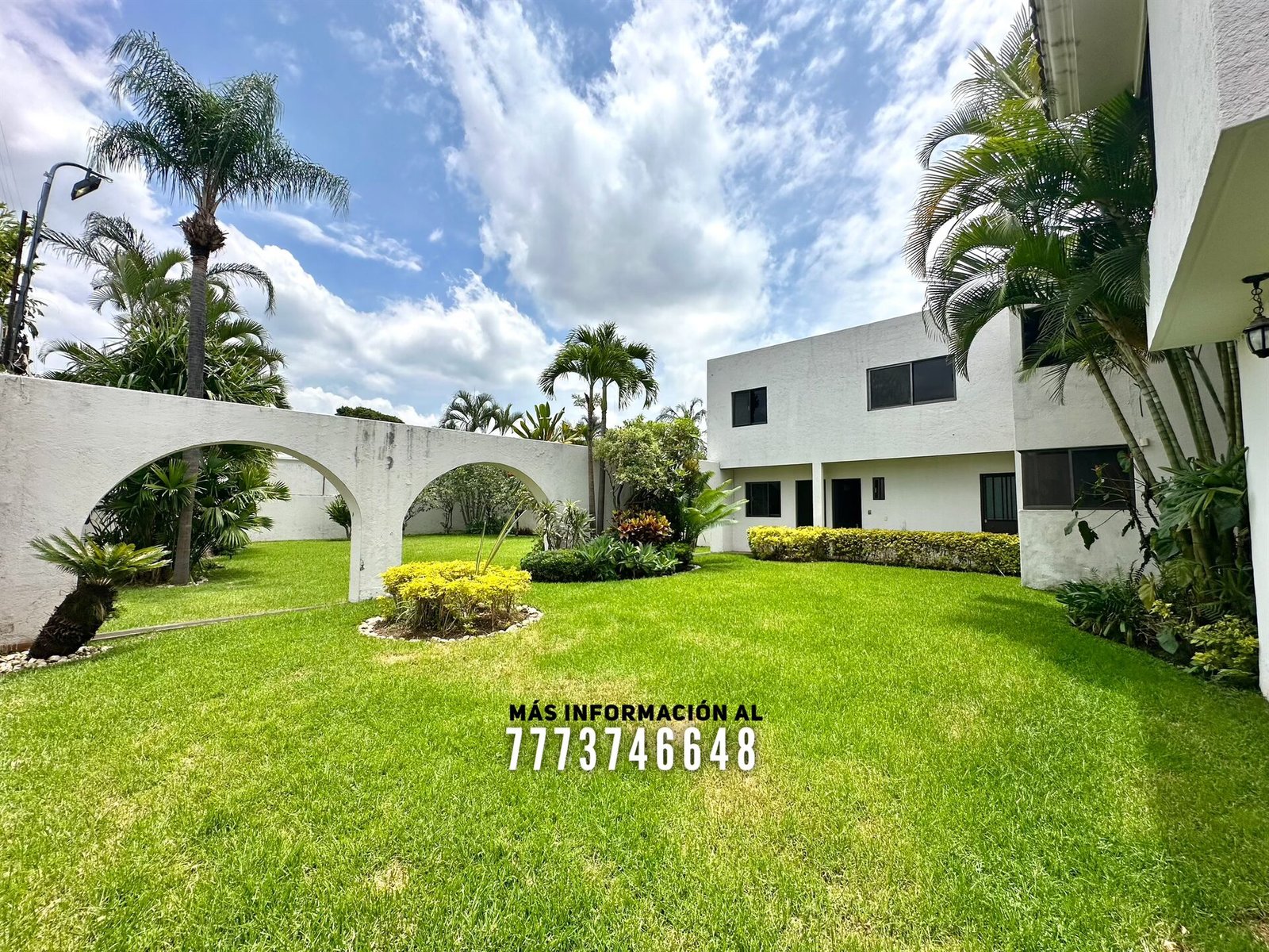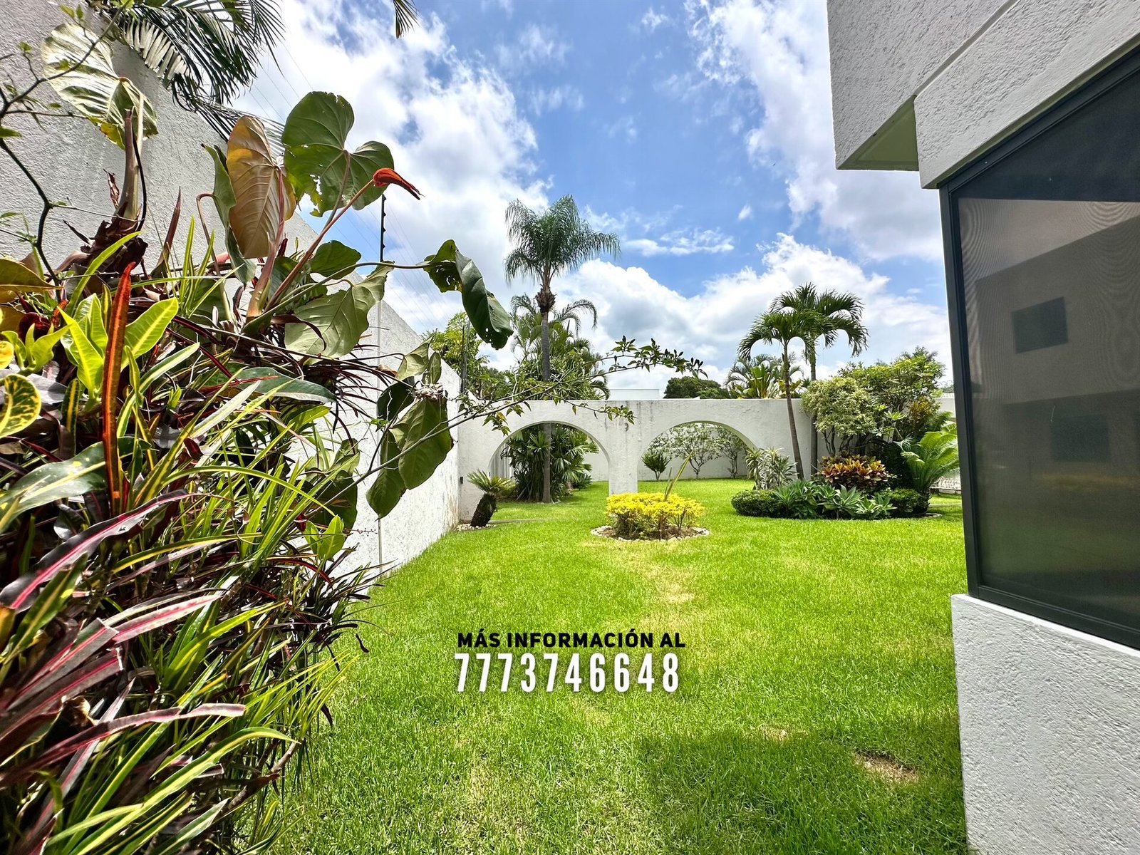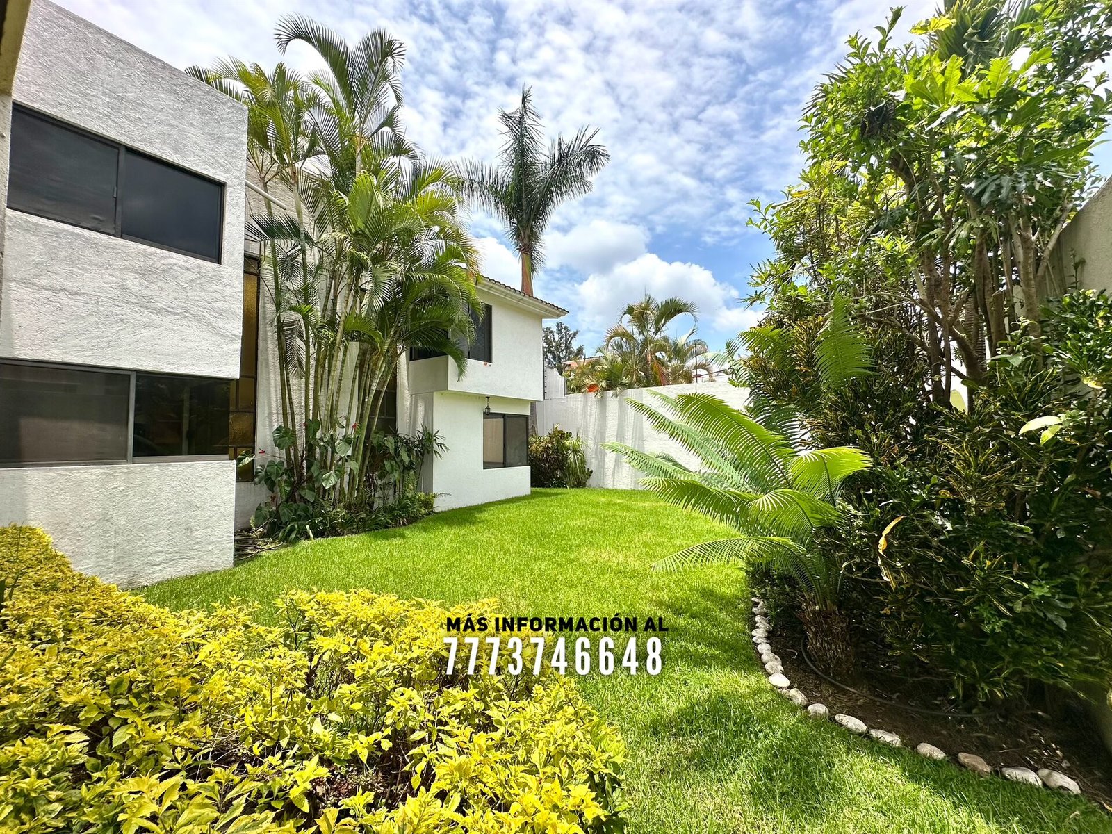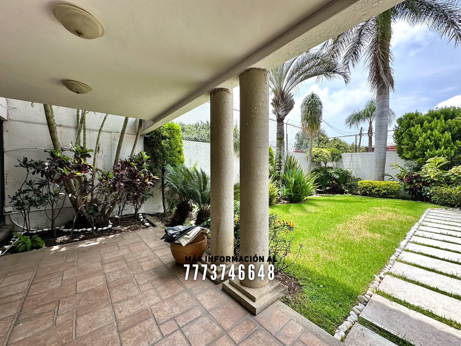 Al frente nos recibe un zaguán, con acceso al jardín o hacia el estacionamiento. Al entrar tenemos un amplio jardín con muy bonita decoración, más adelante una terraza con cómodos espacios, ideal para colocar unos muebles de exterior. También estacionamiento hasta para 4 autos con portón automático.
