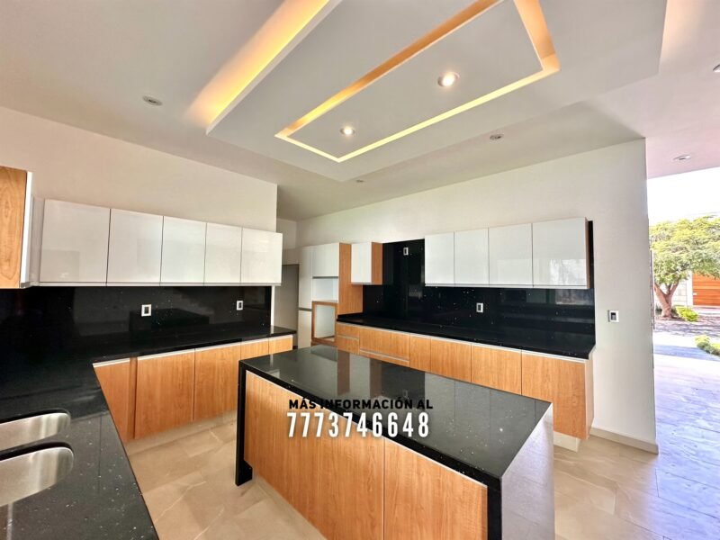 Al entrar a la planta baja tenemos una gran puerta principal a doble altura y lo primero que verás al fondo es el jardín. Primero tenemos una gran área de sala y comedor con vista al jardín, decoración con luz indirecta y bonitos tonos en recubrimientos. Después una cocina con muy buen tamaño, toda con cubiertas de cuarzo, tiene isla y cuarto de alacena. También cuarto de lavado con acceso lateral y en planta baja tendrás medio baño para visitas.