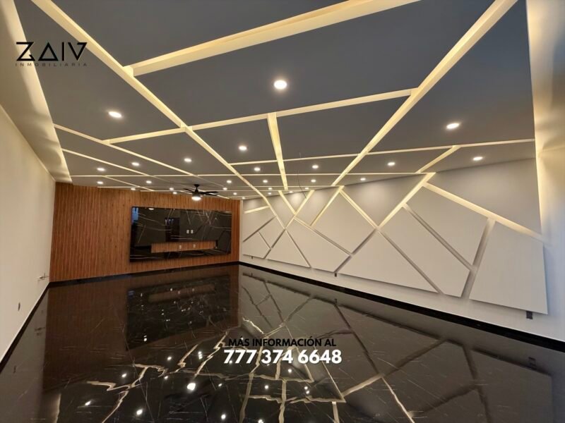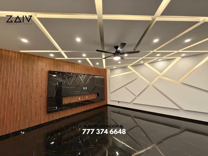 En el sótano tiene una gran área que puede ser tu propio cine, sin duda esta área te encantará. Y todo con una increíble decoración con luz indirecta.