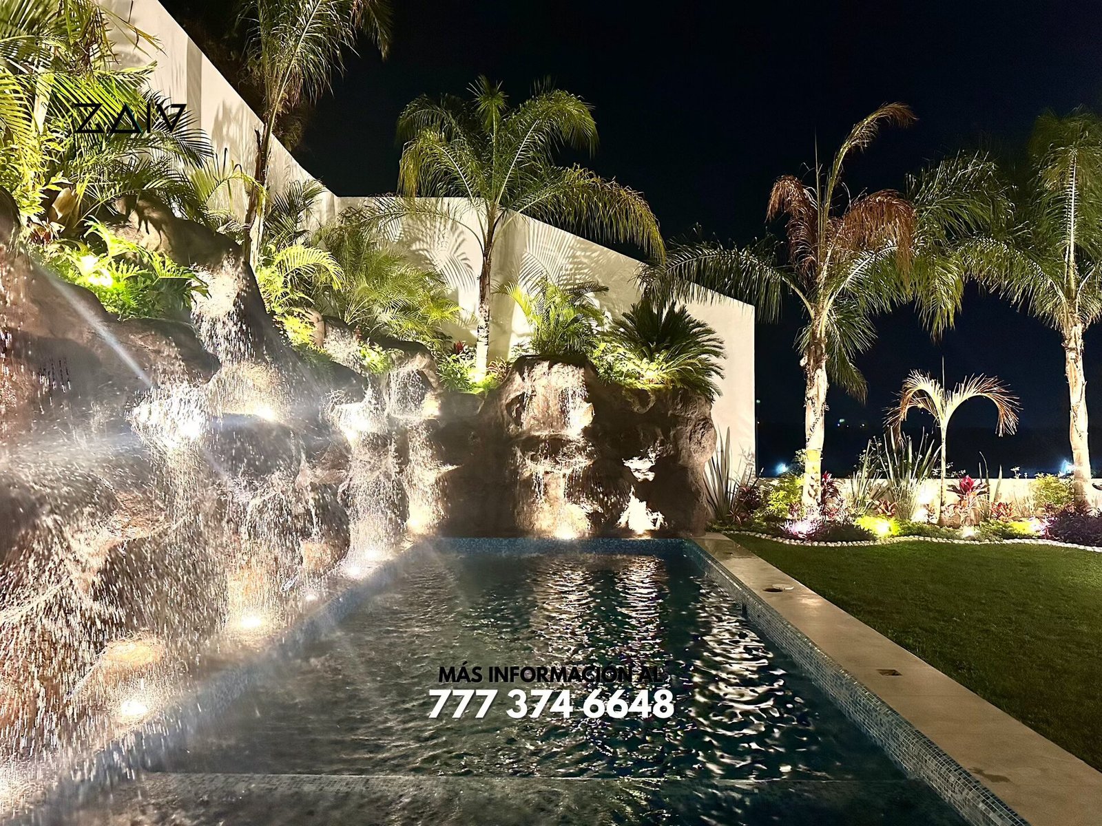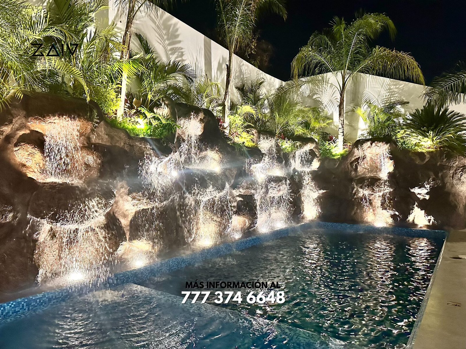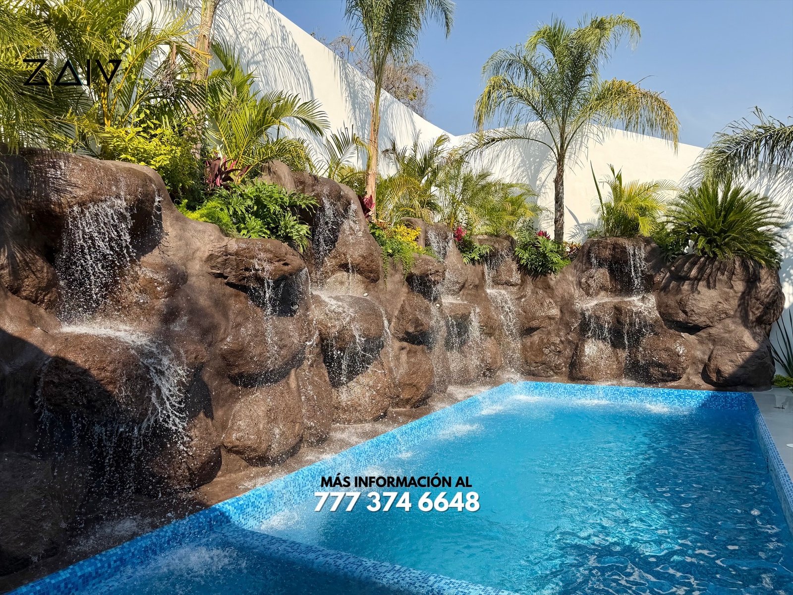 En exterior una terraza con gran orientación, en ella tendrás dos ventiladores y una barra con tarja y asador. Baño completo, jardín con muy bonita decoración y una impresionante alberca con jacuzzi, caldera y una cascada con hermosa decoración