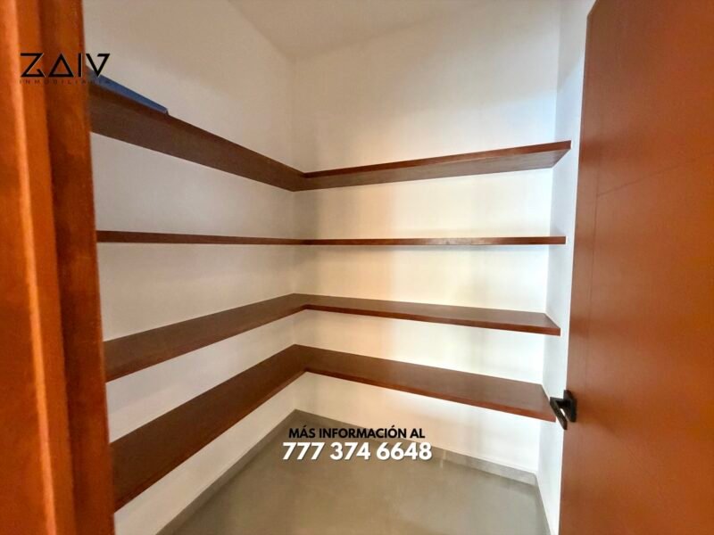 En planta alta tiene tres recámaras más. Cada una con vestidor, ventilador y baño completo Recámara principal de mayor tamaño, un gran vestidor y baño con doble lavabo y tina