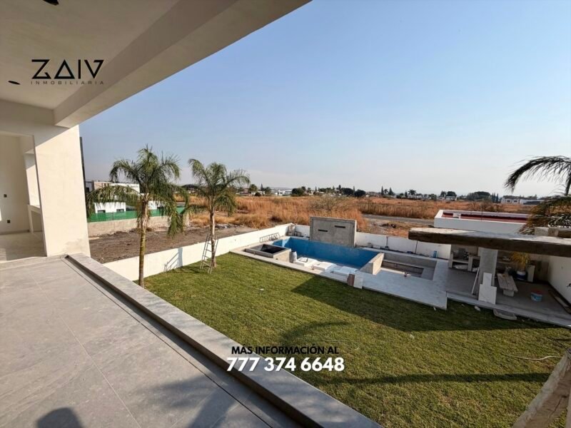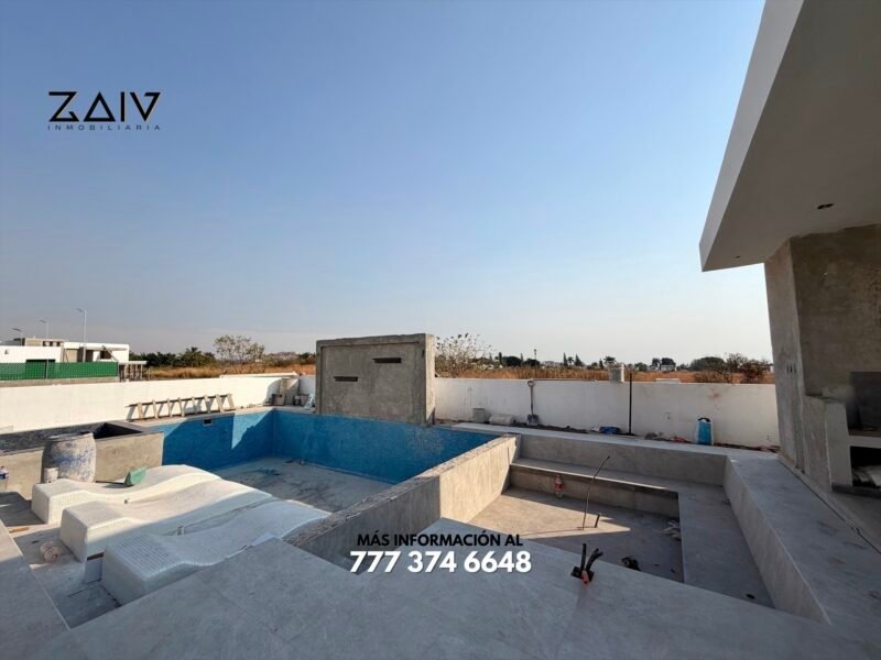 En exterior se encuentra una gran terraza, baño completo, área de asador totalmente techada, fogatero, jacuzzi y una gran alberca con camastros en interior y caídas de agua. Todo con un jardín de excelentes dimensiones, el cual contará con decoración con plantas.