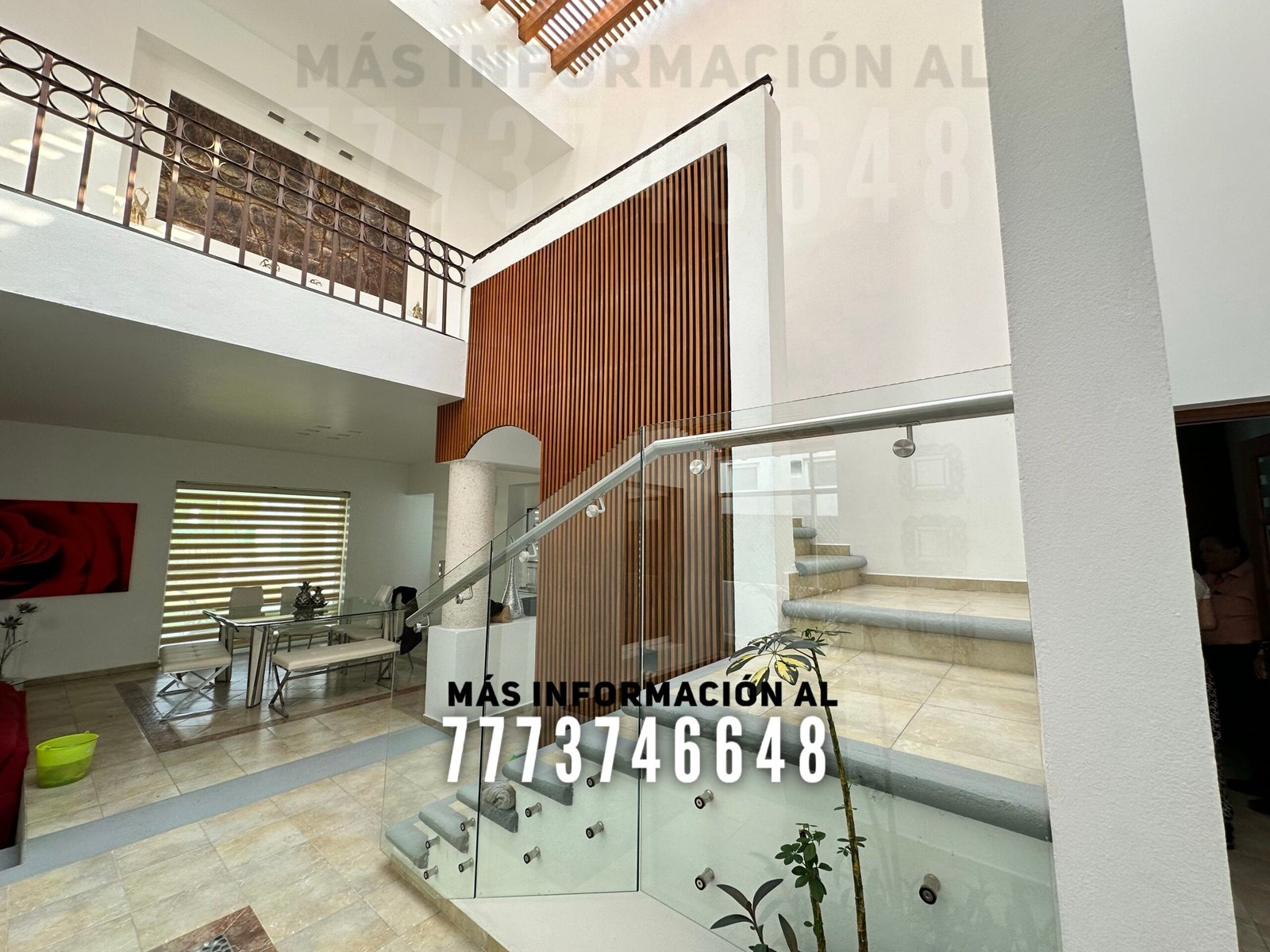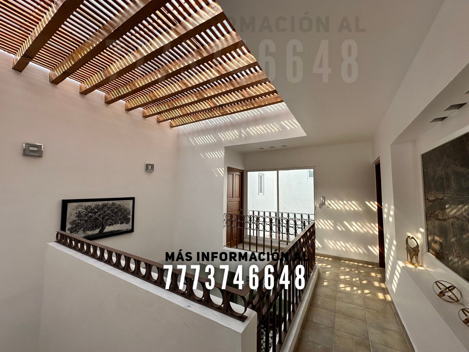 En planta alta tiene cinco recámaras más. Una de ellas es la que se conecta con la de abajo, otra tiene clóset y baño completo. Una más con clóset, baño completo y acceso a la terraza superior. La recámara principal es de mayor tamaño, tiene vestidor y también acceso a la terraza superior. Esta terraza es bastante amplia, desde aquí tendrás acceso a la última recámara. La cual también tiene baño