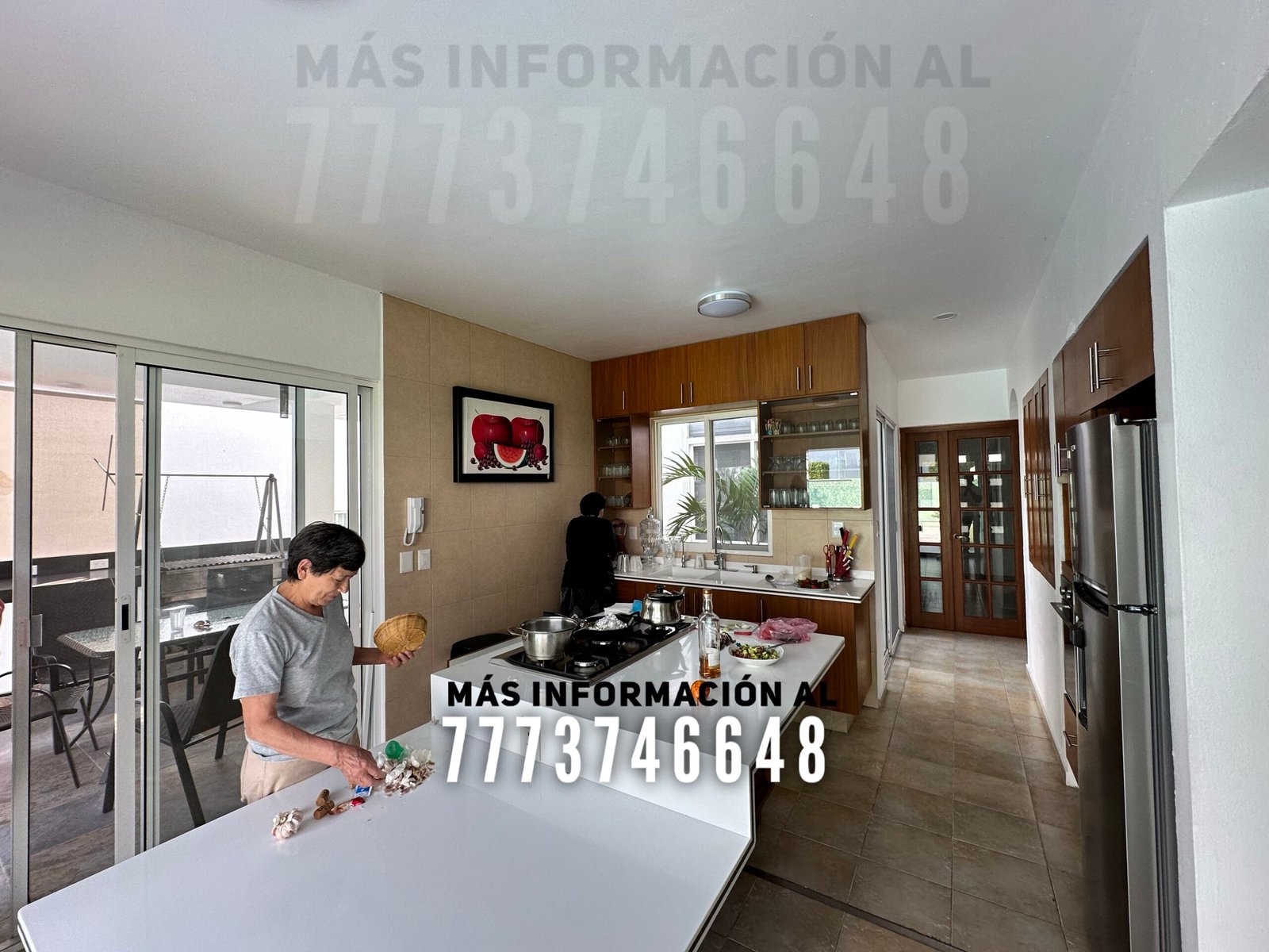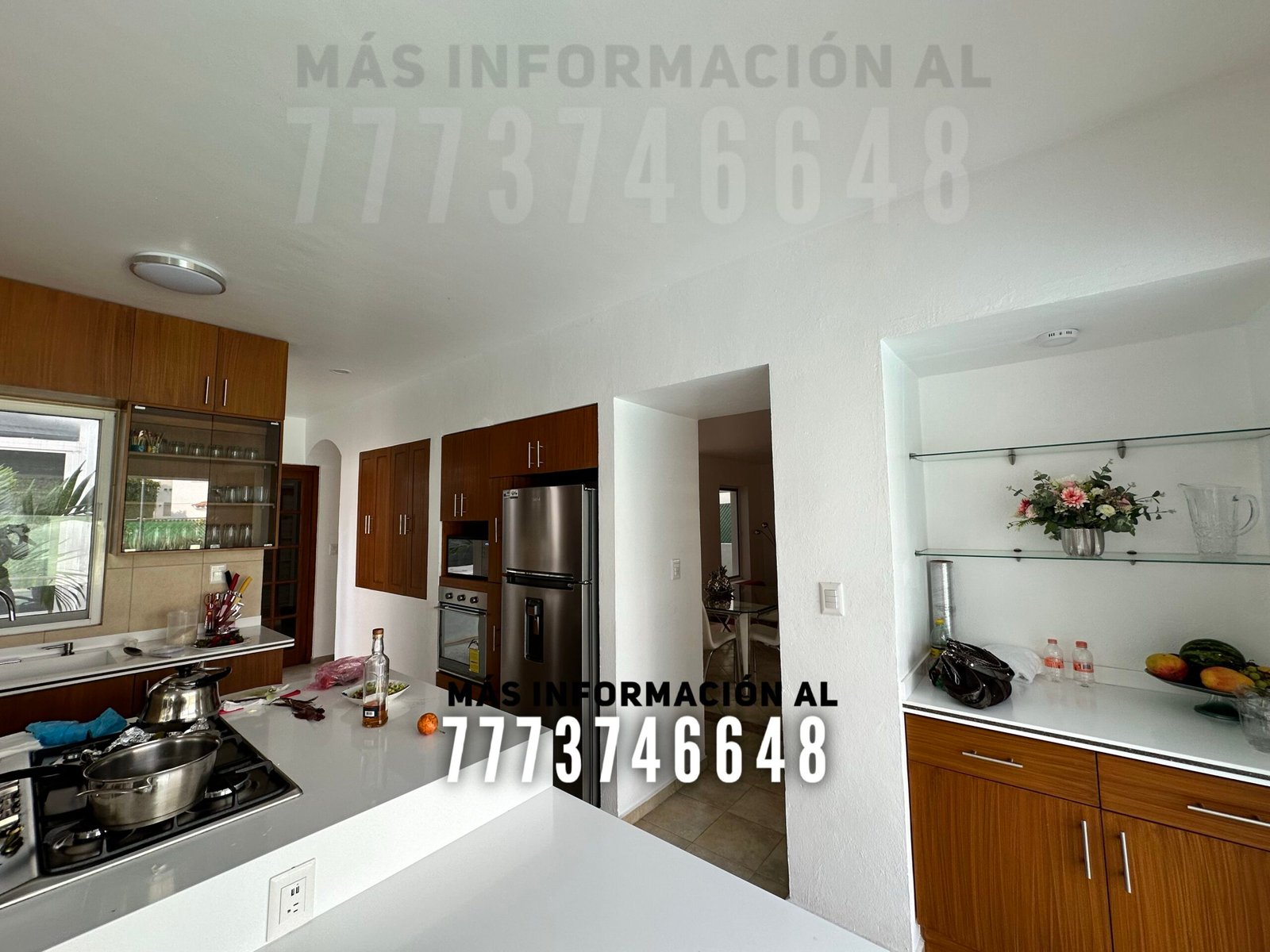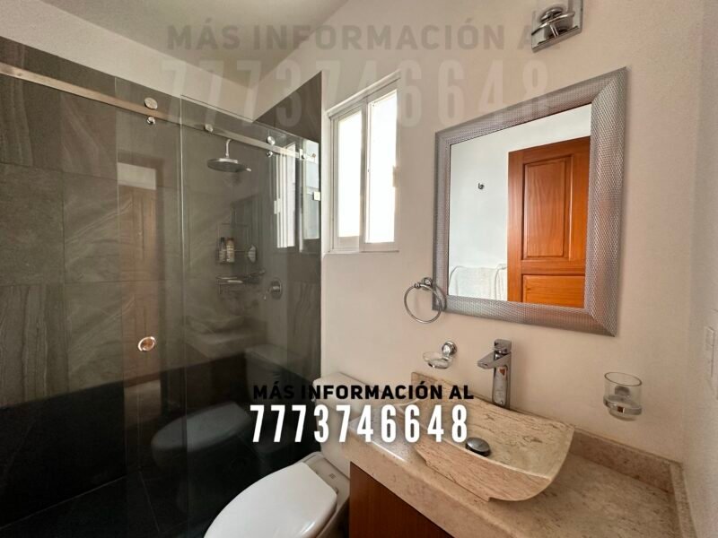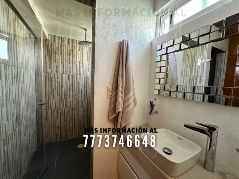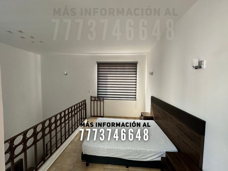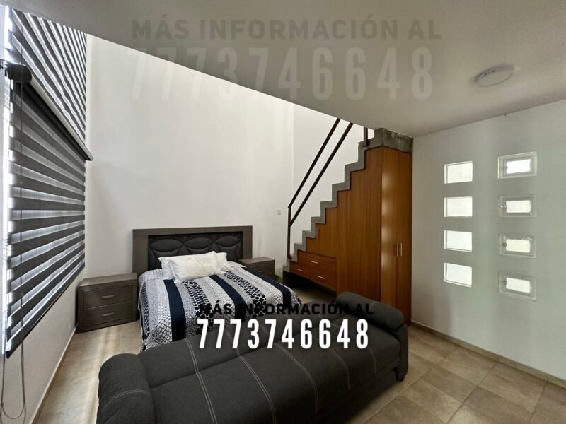 Después una amplia cocina con isla, la cual sirve como desayunador. Desde la cocina tendrás acceso al jardín y hacia el área de asador. En planta baja tenemos la primera recámara, la cual se conecta mediante unas escaleras internas, tipo tapanco, con otra recámara en planta alta. Por último un baño completo, que le da servicio a esta recámara y a toda la estancia