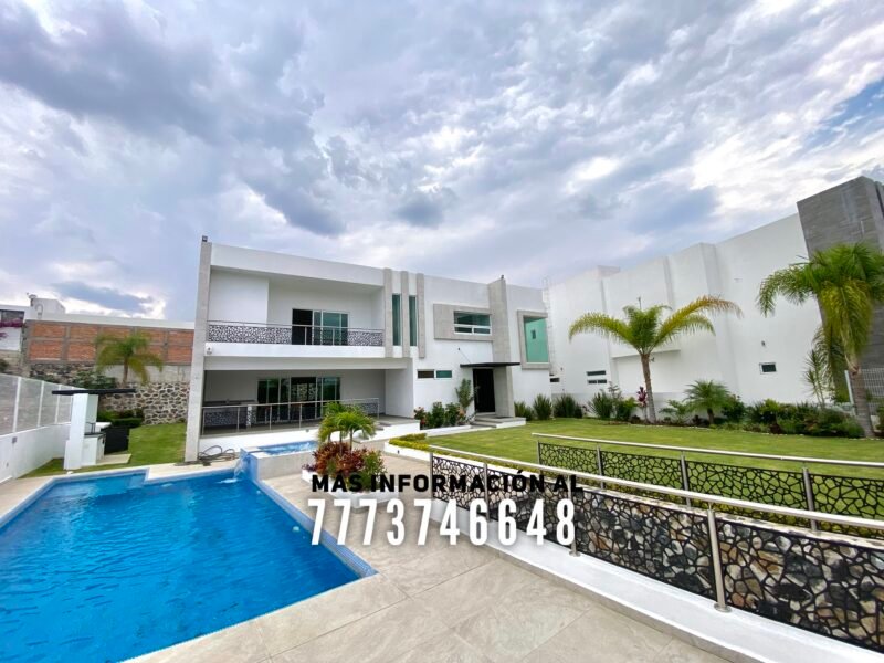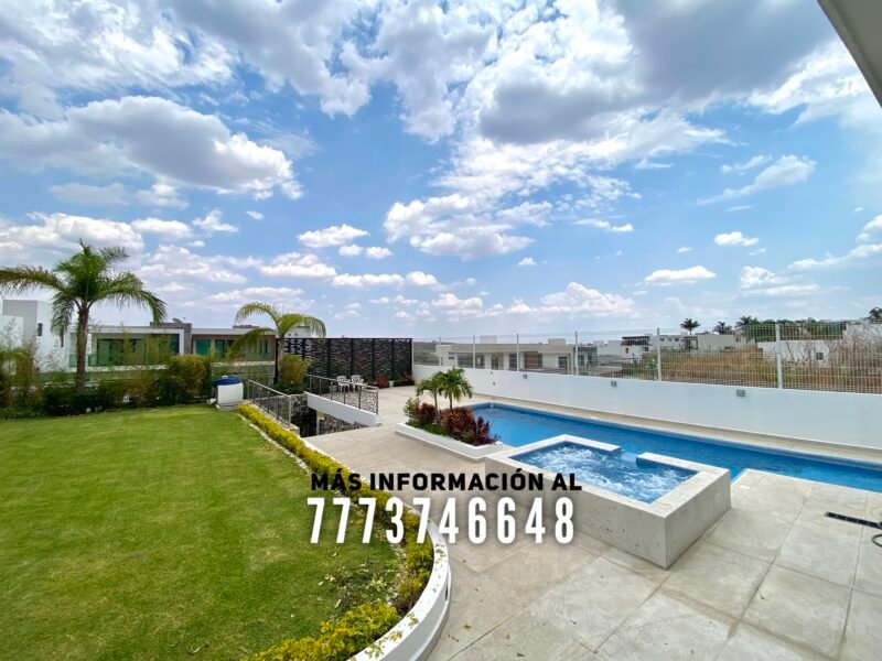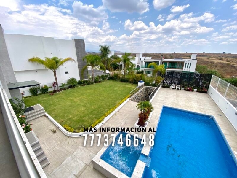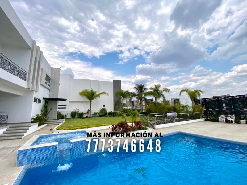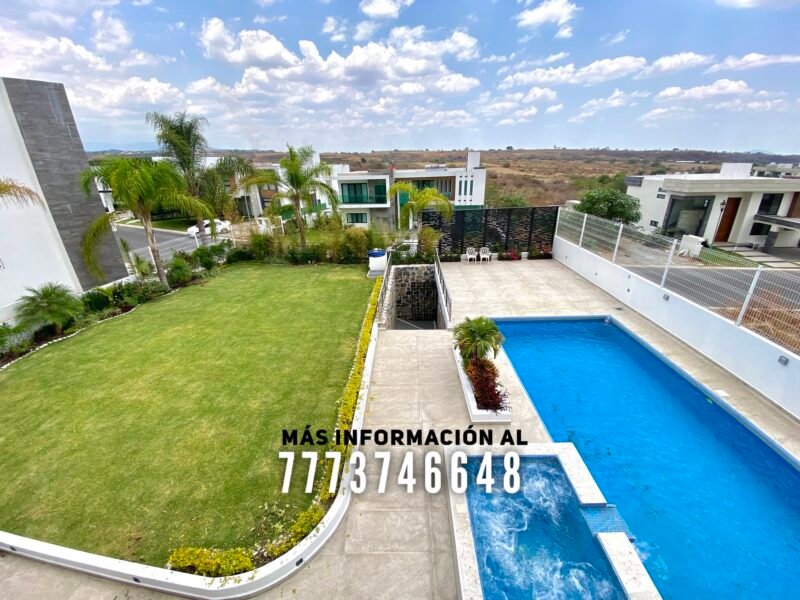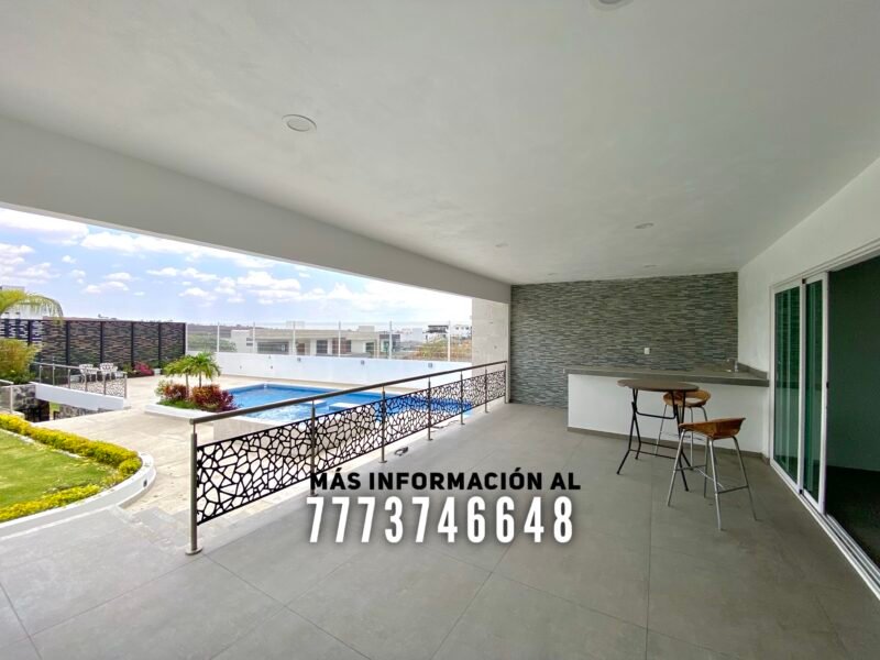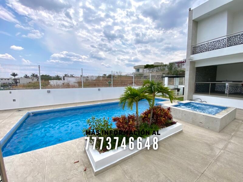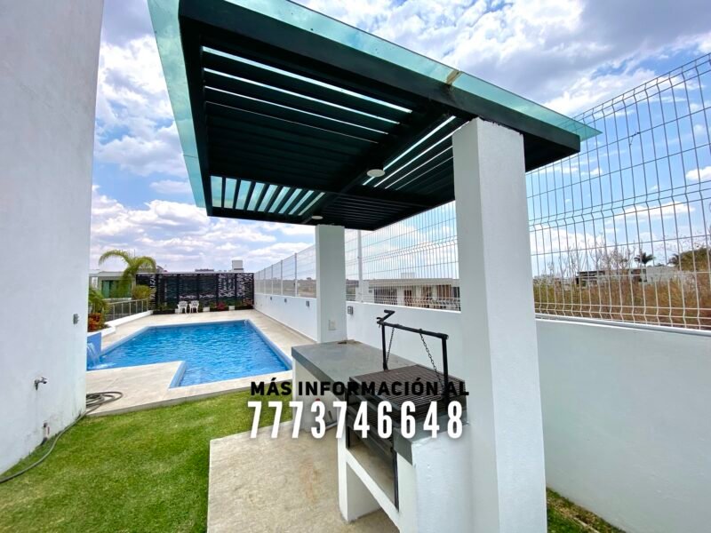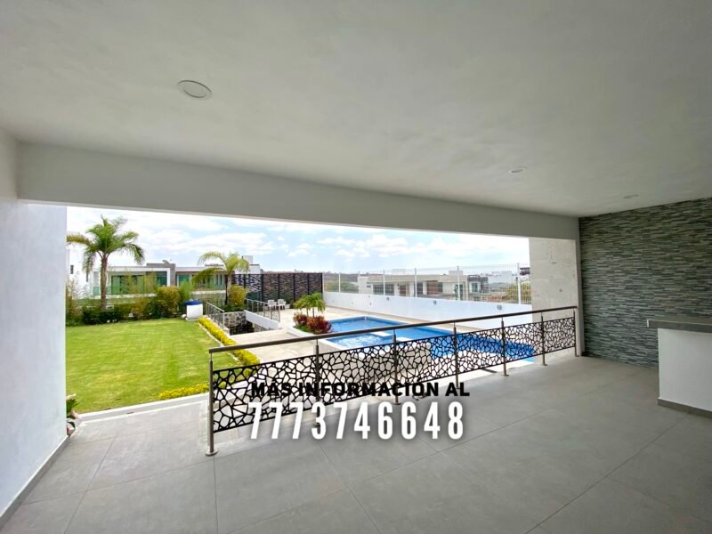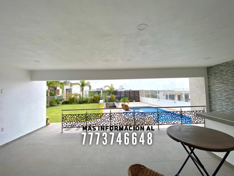 En exterior se encuentra una terraza, la cual tiene buena orientación, con sombra prácticamente todo el día. Aquí tiene una barra para que puedas preparar tu bebida favorita y un baño completo. Después tenemos la alberca, de excelente tamaño. Tiene jacuzzi y área para camastros con vista a los volcanes. A un costado de la alberca se encuentra el asador. En el pasillo lateral una bodega y le queda muy buen tamaño en jardín, el cual tiene bonita decoración con plantas