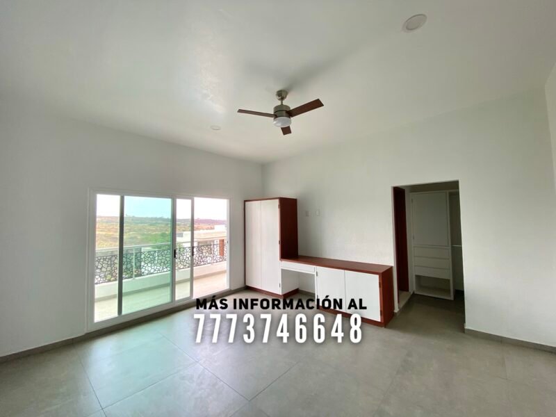 En planta alta cuenta con tres recámaras más. Todas de gran tamaño, cada una con baño completo y vestidor. La recámara principal cuenta con doble lavabo y tiene un balcón privado con vista al jardín y a los volcanes. Las otras dos recámaras comparten una terraza con vista al jardín trasero. También tiene una sala de TV