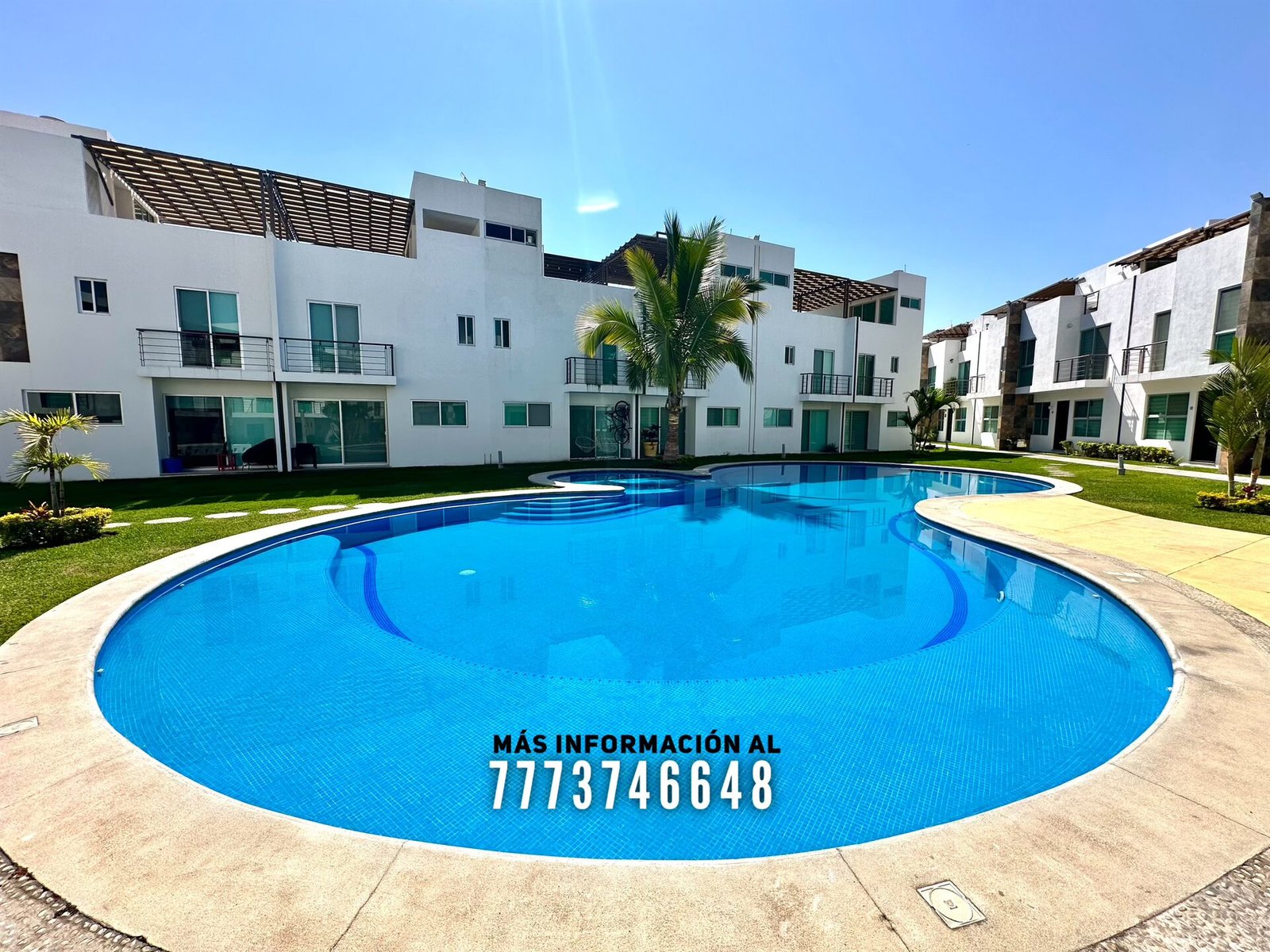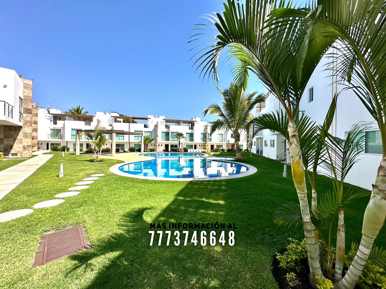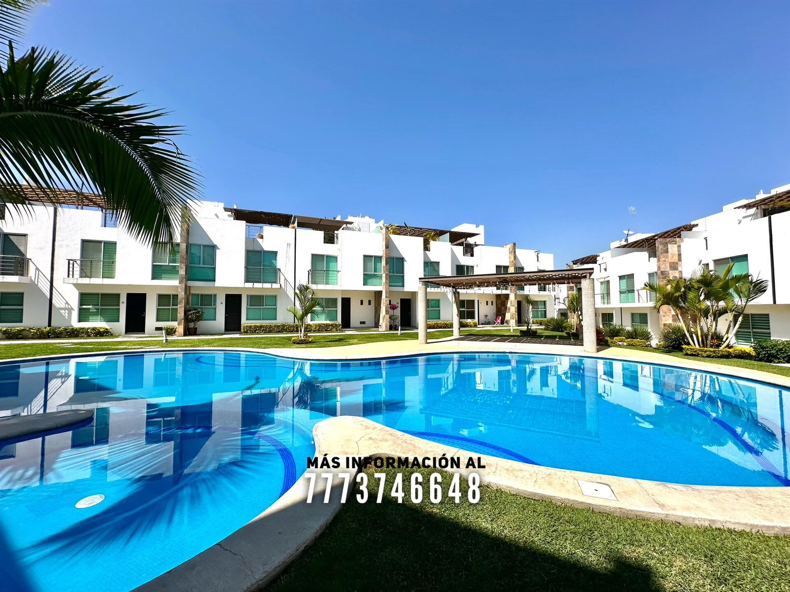 En áreas comunes tiene grandes áreas verdes con bonita decoración, una alberca de asombroso tamaño, zona de chapoteadero, palapa y regadera tipo playera. Cada casa cuenta con estacionamiento a unos metros.