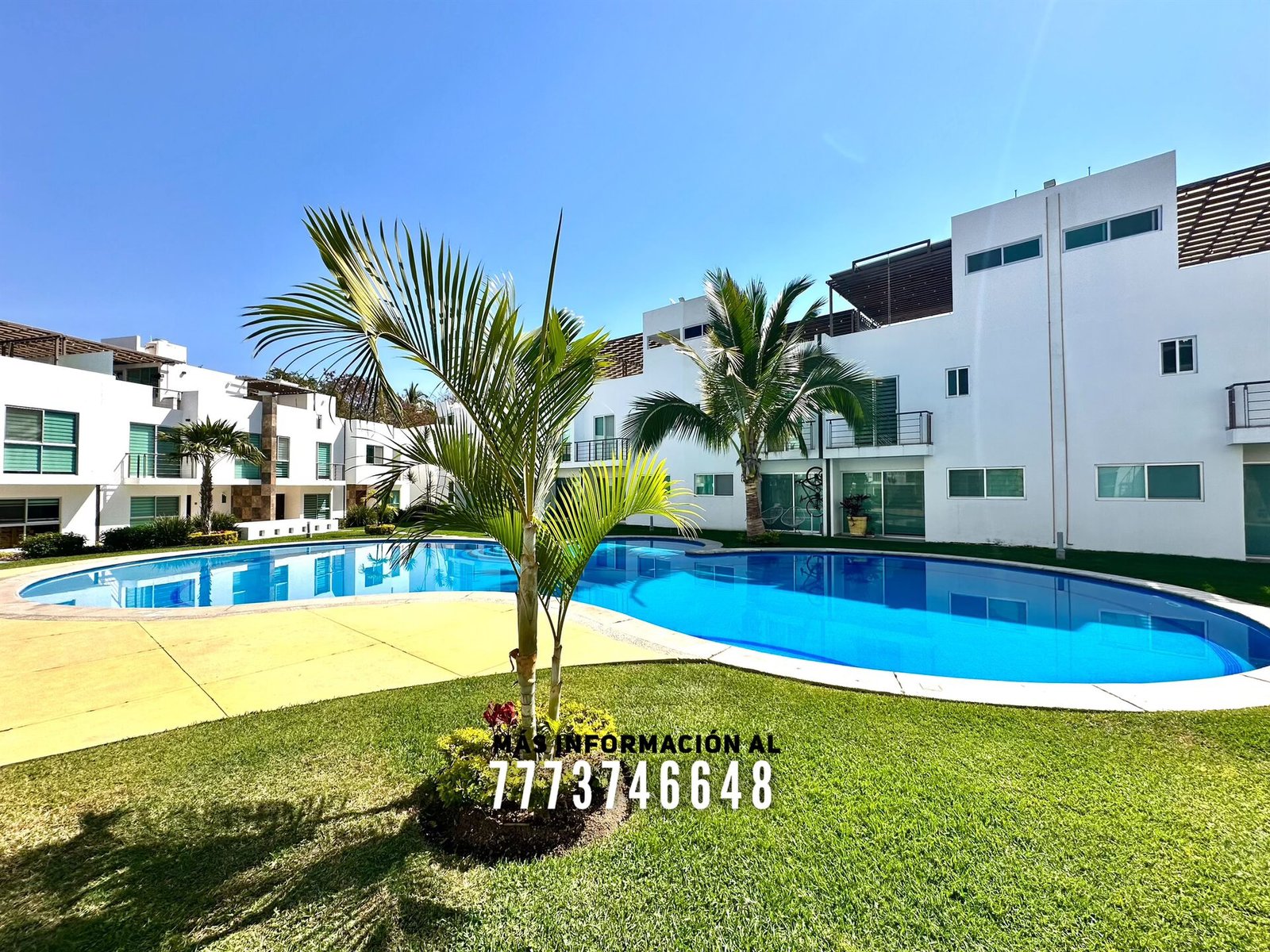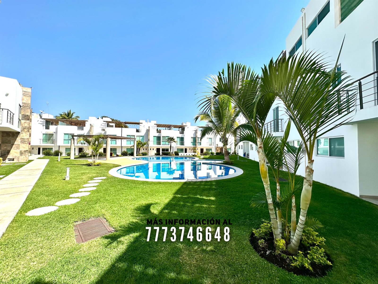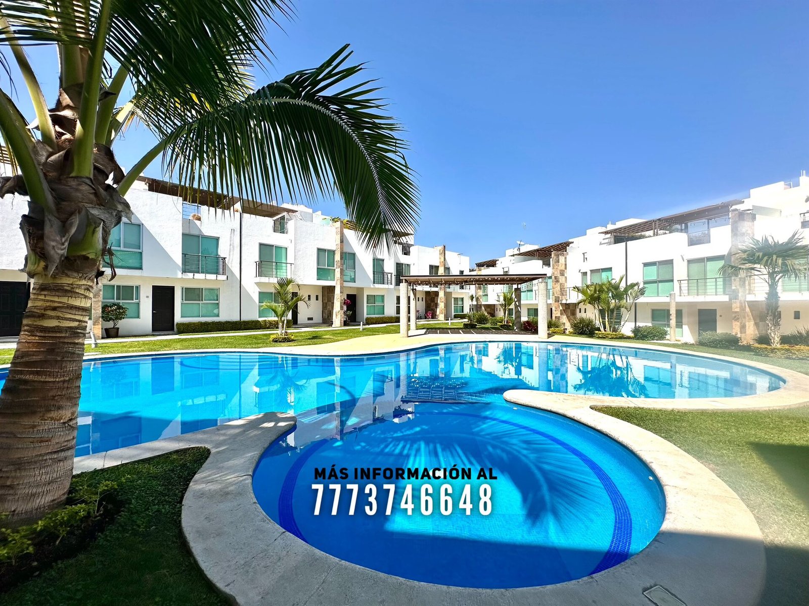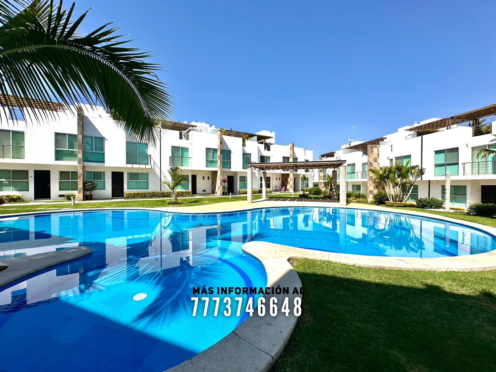 En áreas comunes tiene grandes áreas verdes con bonita decoración, una alberca de asombroso tamaño, zona de chapoteadero, palapa y regadera tipo playera. Cada casa cuenta con estacionamiento a unos metros.