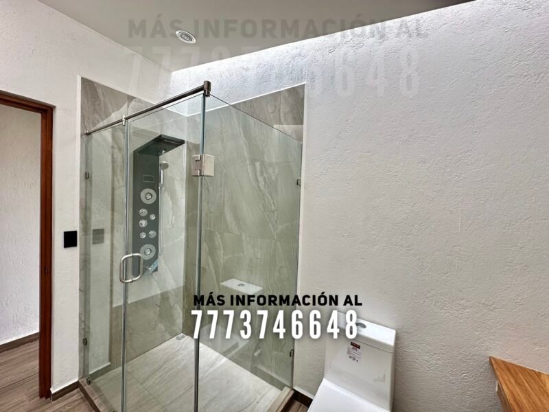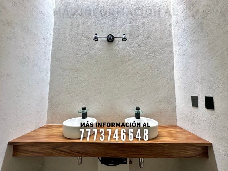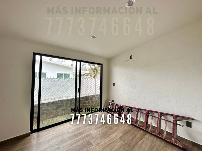 Tiene un total de tres recámaras. Dos de ellas comparten baño completo, el cual también le da servicio a toda la estancia. La recámara principal tiene baño privado con doble lavabo y tiene acceso al jardín.
