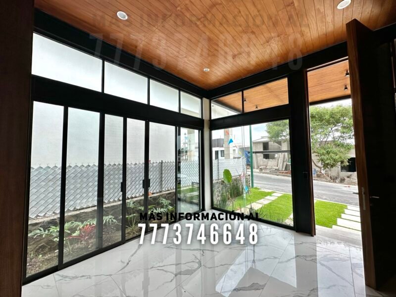 Al frente tiene estacionamiento para dos autos, uno de ellos techado. Cuenta con puerta principal a doble altura, gran iluminación natural en toda la casa y se encuentra en una zona nueva del fraccionamiento (en donde tendrás servicios subterráneos, calles más amplias y todas las casas son nuevas)