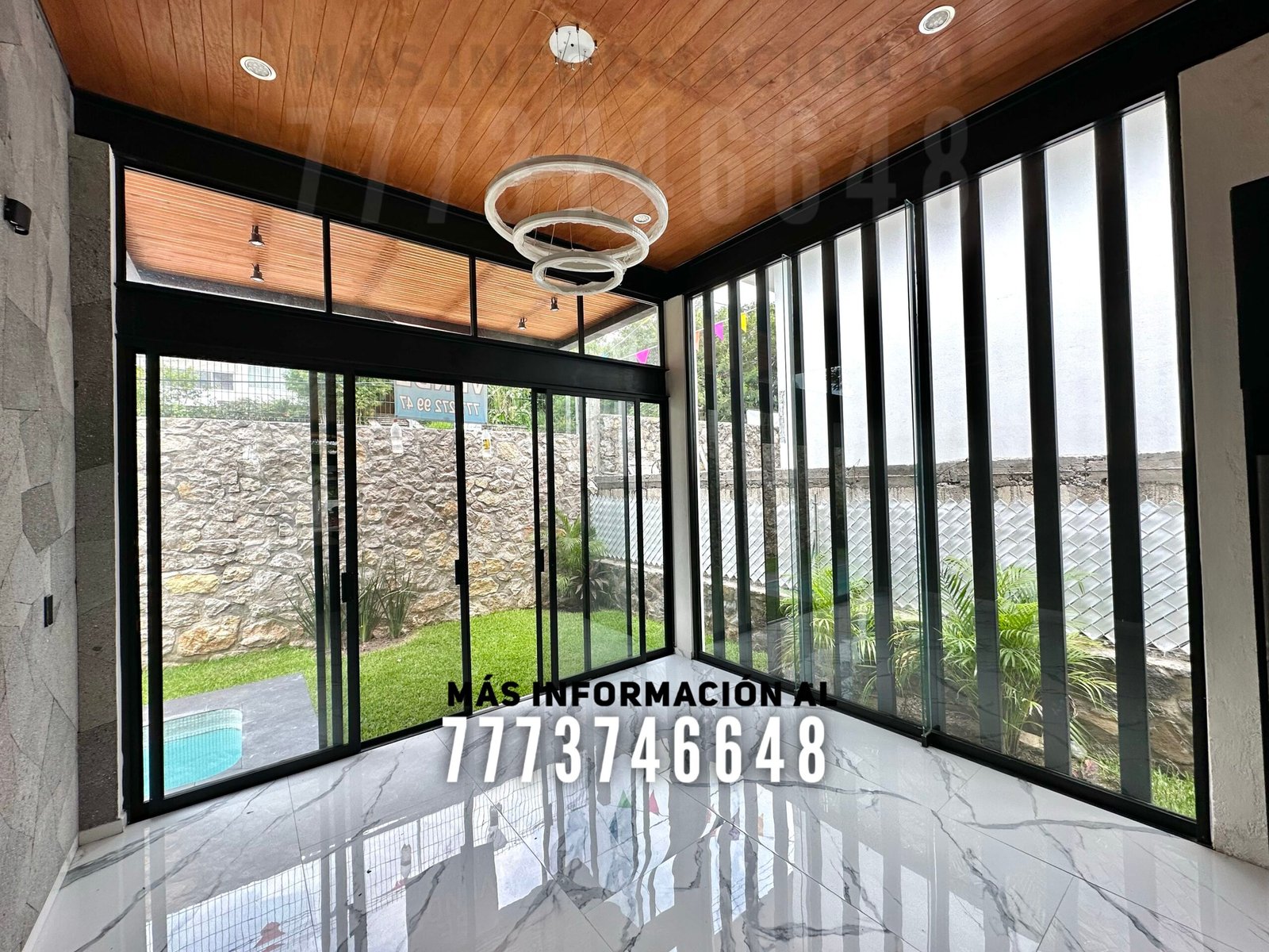 Se encuentra construida en un solo nivel. Tiene sala, comedor y cocina con gran altura, hermosa decoración y una excelente iluminación natural. El comedor cuenta con vista y acceso al jardín. La cocina de buen tamaño con isla, bonitos tonos en carpintería, cubiertas de cuarzo y acceso al área de lavado.