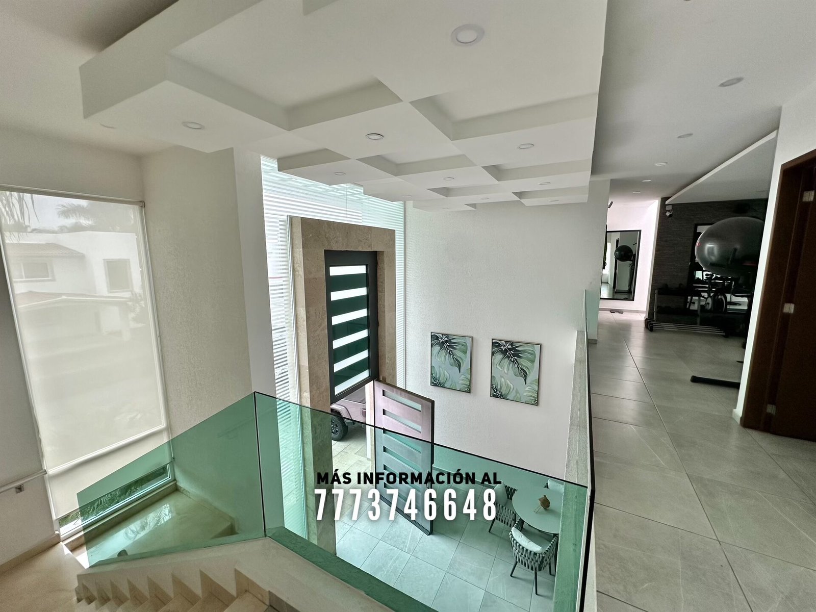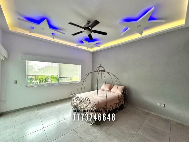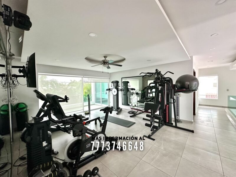 En planta alta tiene tres recámaras más. Cada una con clóset, de buen tamaño y baño completo privado. La recámara principal es de mayor tamaño, con vestidor y baño con doble lavabo. Desde aquí tendrás vista hacia el jardín principal Cuenta con gimnasio, que también podrías utilizar como sala de TV, desde aquí tendrás acceso hacia la terraza superior con hermosa vista al jardín