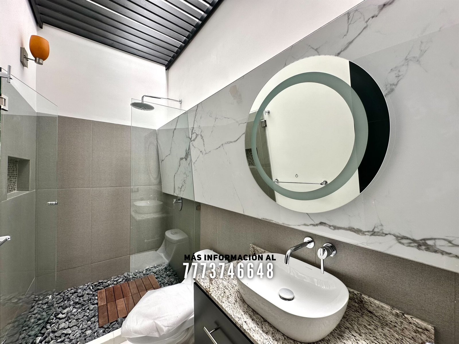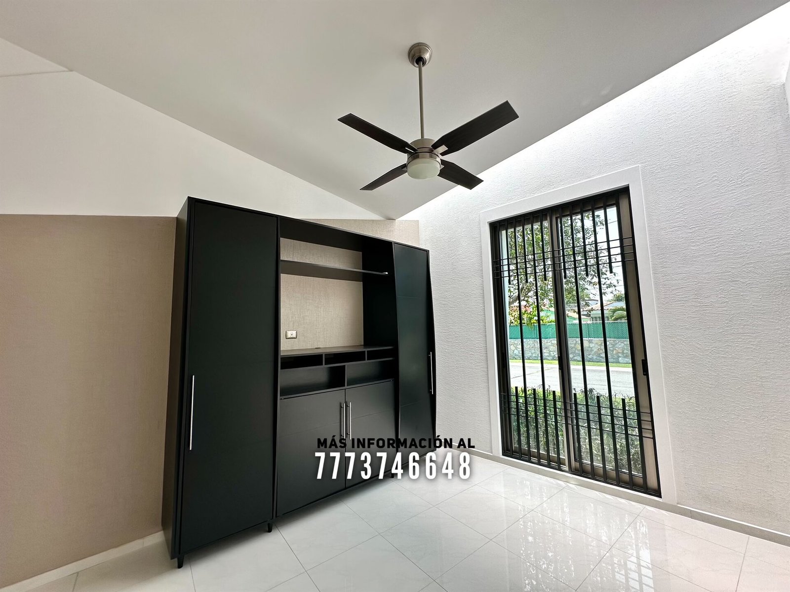 La casa está construida en una sola planta, esto la hace una casa muy cómoda. Cuenta con tres amplias recámaras. Cada una de ellas con gran altura, clóset, ventilador, excelente iluminación natural y baño completo privado. La recámara principal es la de mayor tamaño. Tiene doble ventilador, clóset, vista al jardín principal y en el baño tiene otro mueble que te sirve como clóset.