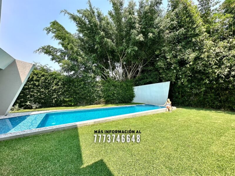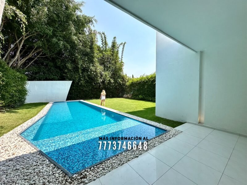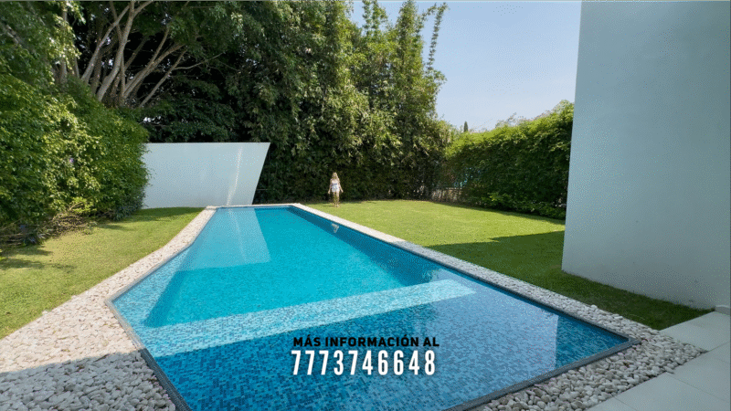 Al salir, lo primero que tenemos es la terraza. Es una terraza con excelente orientación, ya que, tiene sombra prácticamente todo el día. También tendrás baño completo que le da servicio a todo el jardín. Claro que no podía faltar una alberca de buen tamaño, la cual ya cuenta con caldera, una banca en el interior y área de chapoteadero, que también podrías utilizar para colocar unos camastros.
