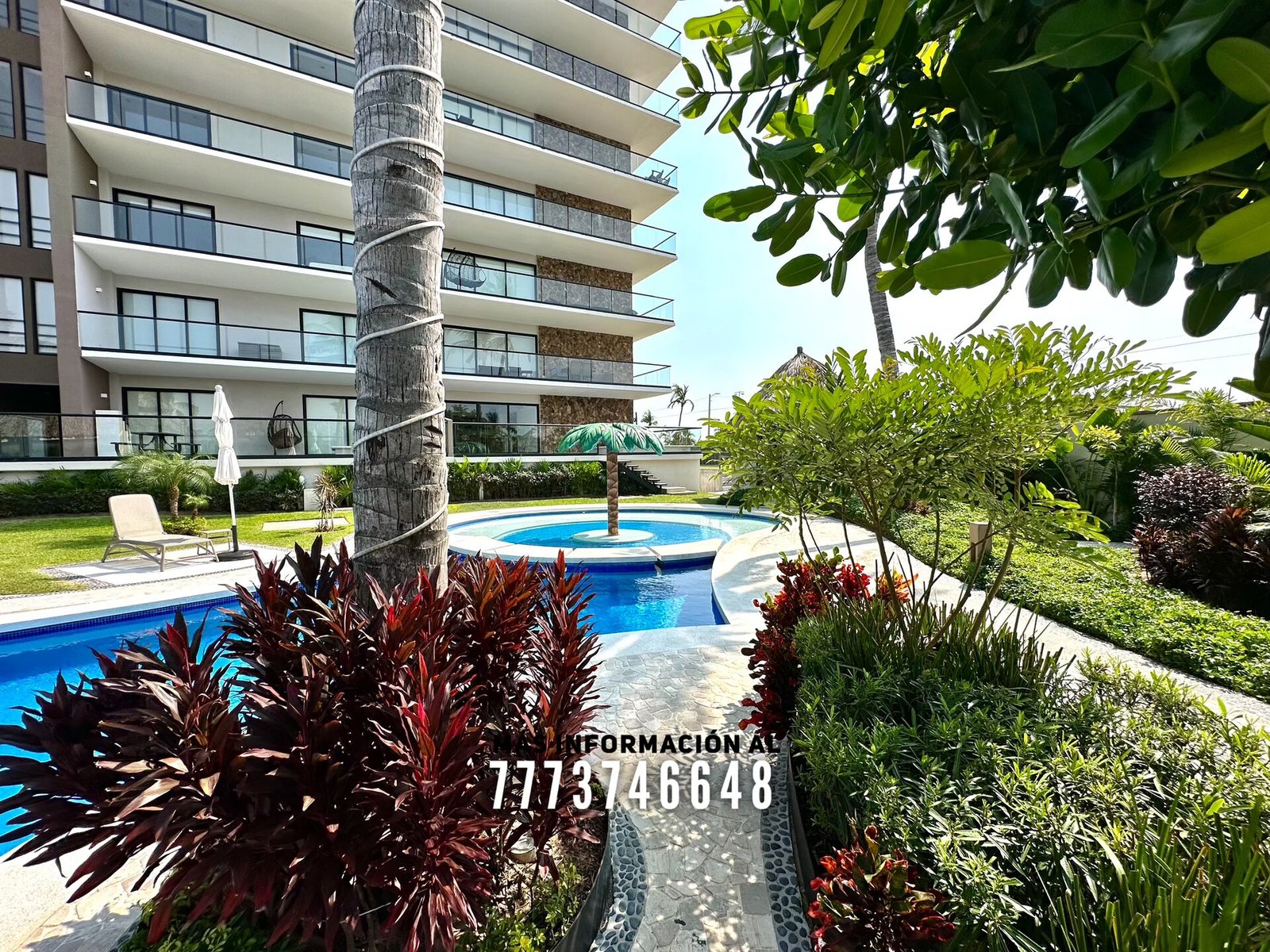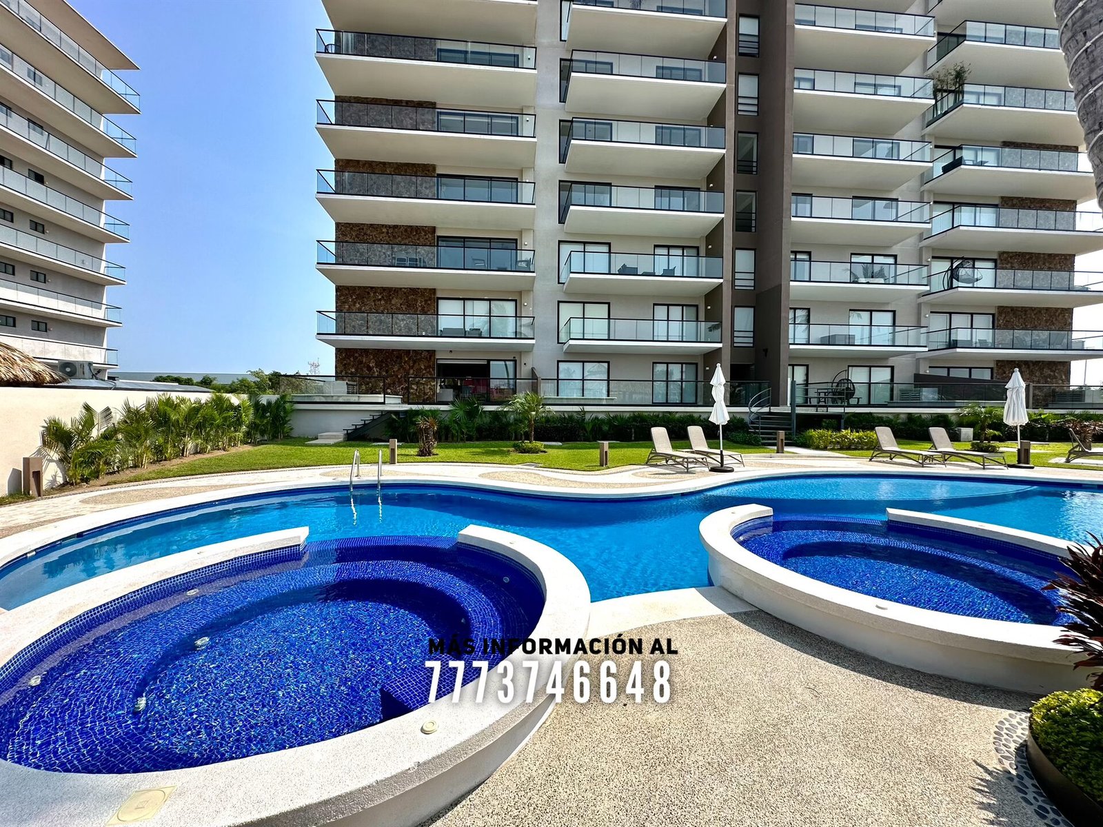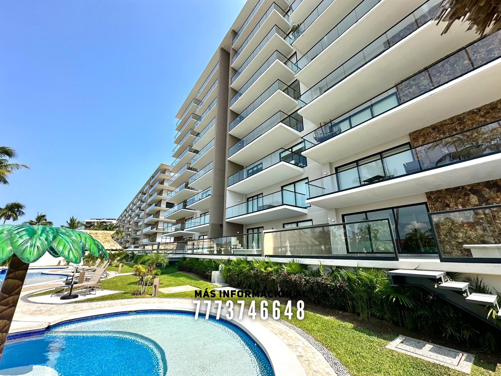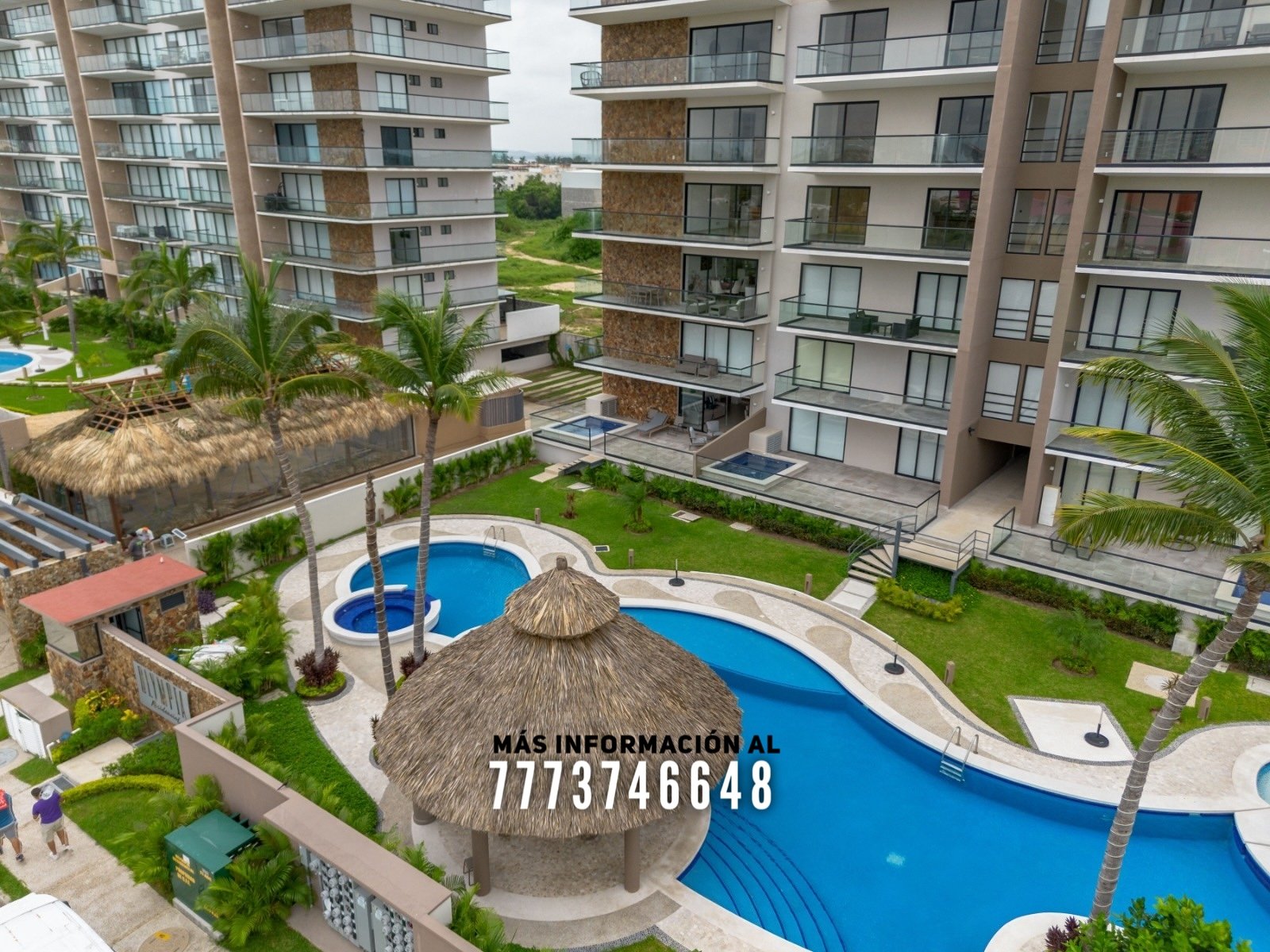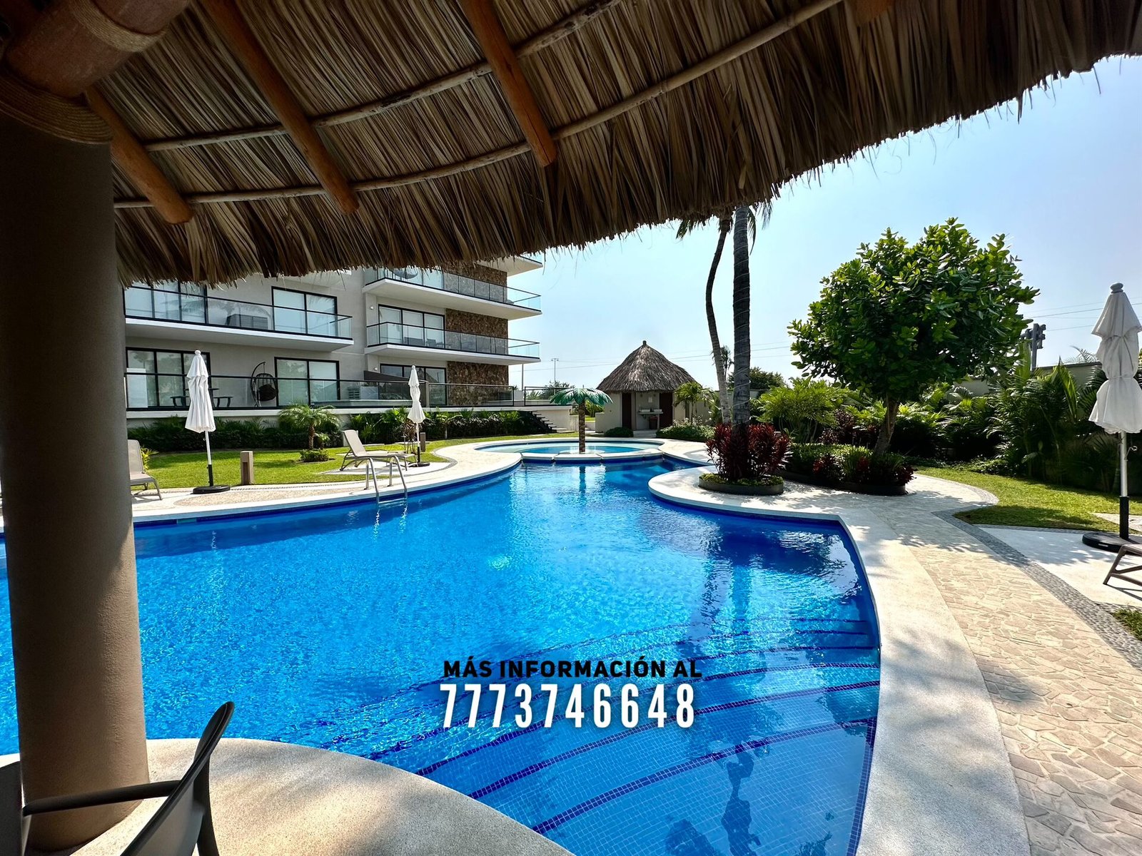 En áreas comunes tendrás grandes áreas verdes con hermosa decoración con plantas. Una asombrosa alberca, tiene excelente tamaño. Al igual que un par de jacuzzis, gran palapa con mesas y un aquabar. Este aquabar funciona 6 días de la semana, así que podrás disfrutar de tus días en la alberca mientras tomas tu bebida favorita. También cuenta con área infantil y un par de baños en exterior.