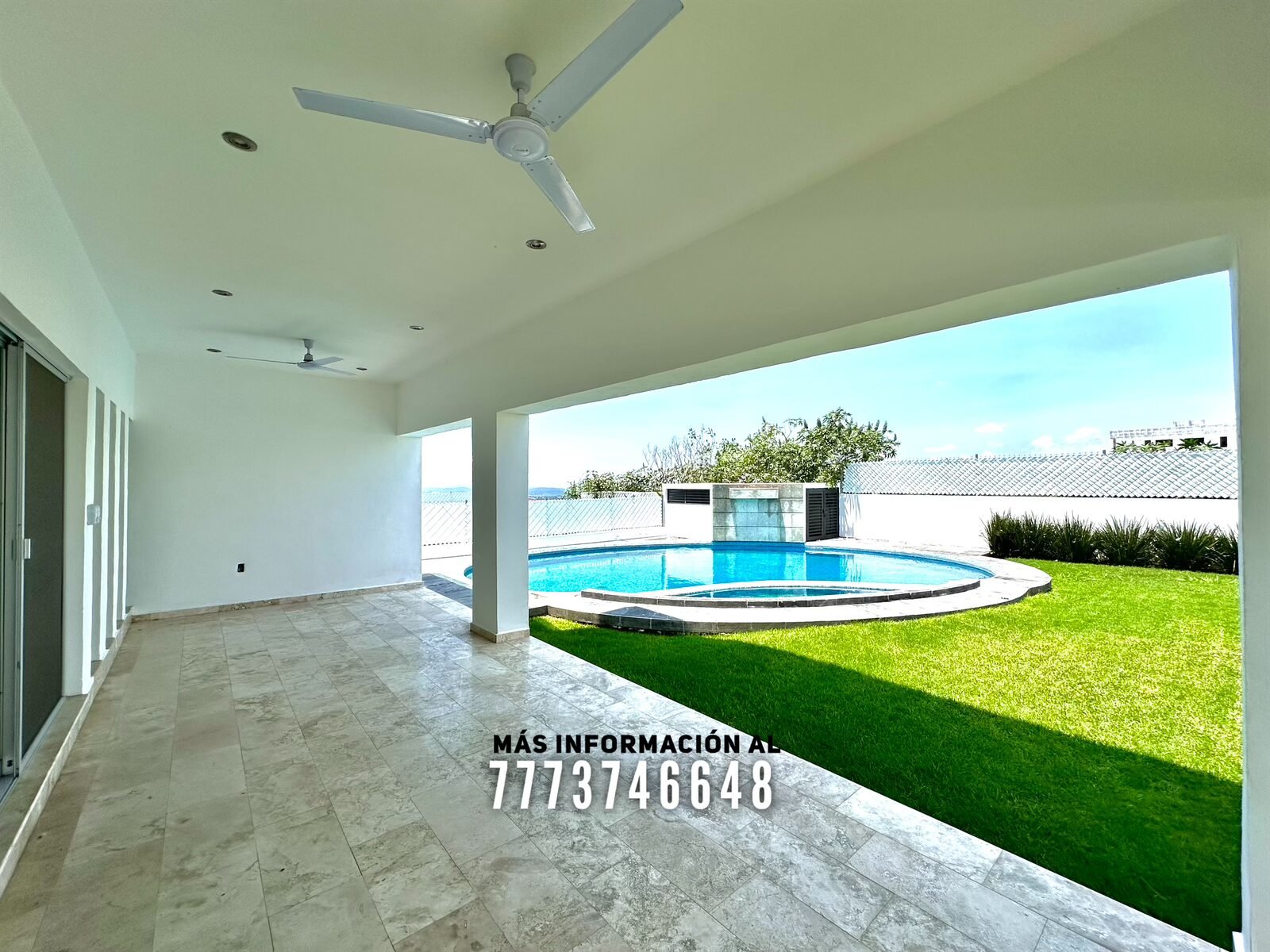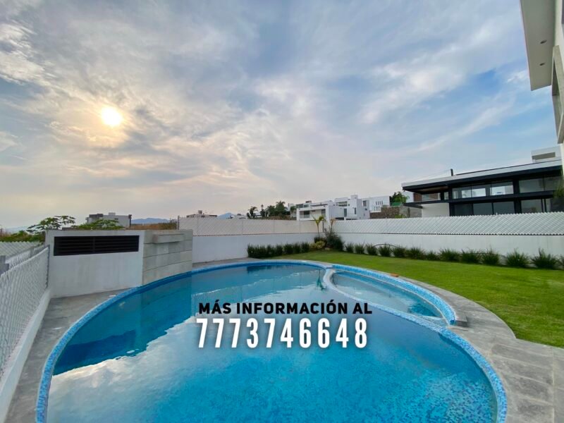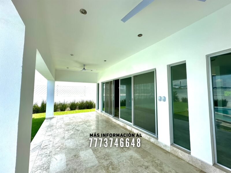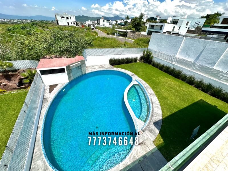En exterior tenemos una gran terraza, jardín con bonita decoración, baño completo que le da servicio al jardín y una de las albercas más grandes que encontrarás, aparte tiene cascada con caída de agua hacia ella.