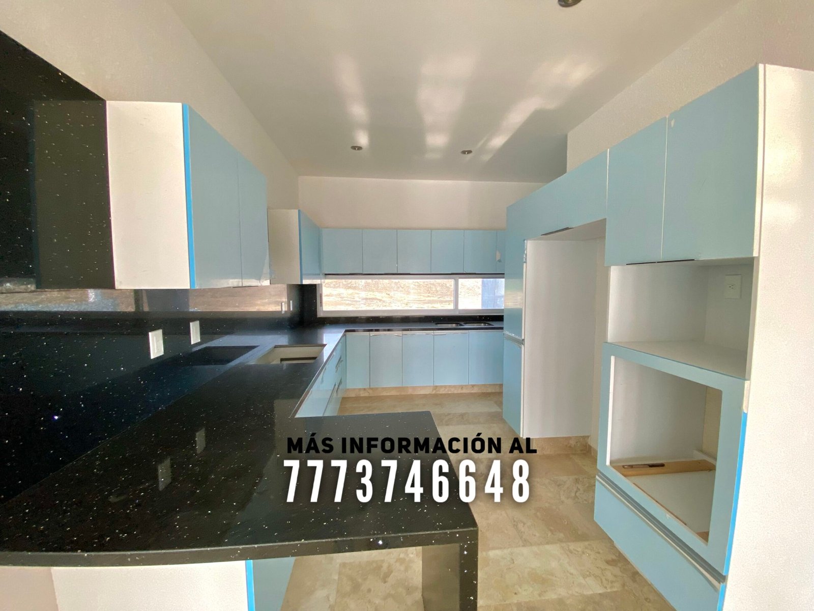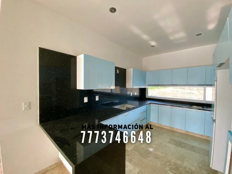 En planta baja tenemos el área de sala y comedor con vista al jardín y buenos espacio. Después la cocina con cubiertas de cuarzo y cuarto de lavado. Tiene medio baño de visitas y una recámara más en planta baja, con baño completo y clóset