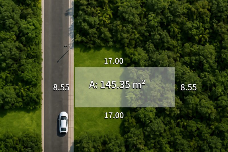 El terreno es rectangular. Cuenta con un frente de 8.55 m y un fondo de 17.00 m Con 145.35 m² de superficie y un precio de $1,330,000